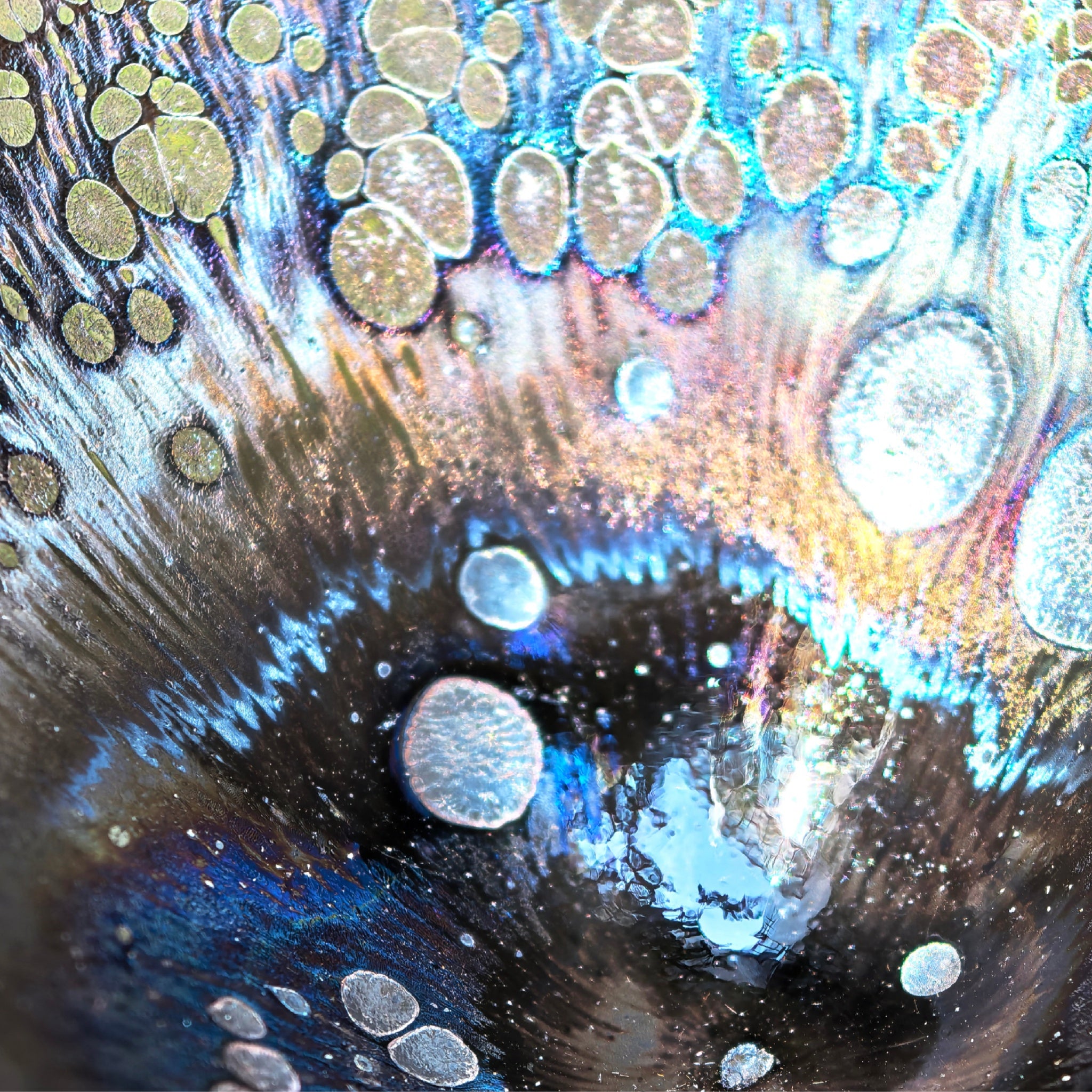 Through carefully controlled oxygen intake, stunning natural patterns emerge—reminiscent of meteorite craters and cosmic auroras. The deep black glaze transitions gently to a jade-like rim, with lush glaze texture and dramatic dripping effects. What makes each cup truly one-of-a-kind are the vibrant and unpredictable colors formed by mineral traces and firewood elements reacting under intense heat. Its position in the kiln further shapes its unique visual story—making no two pieces alike.