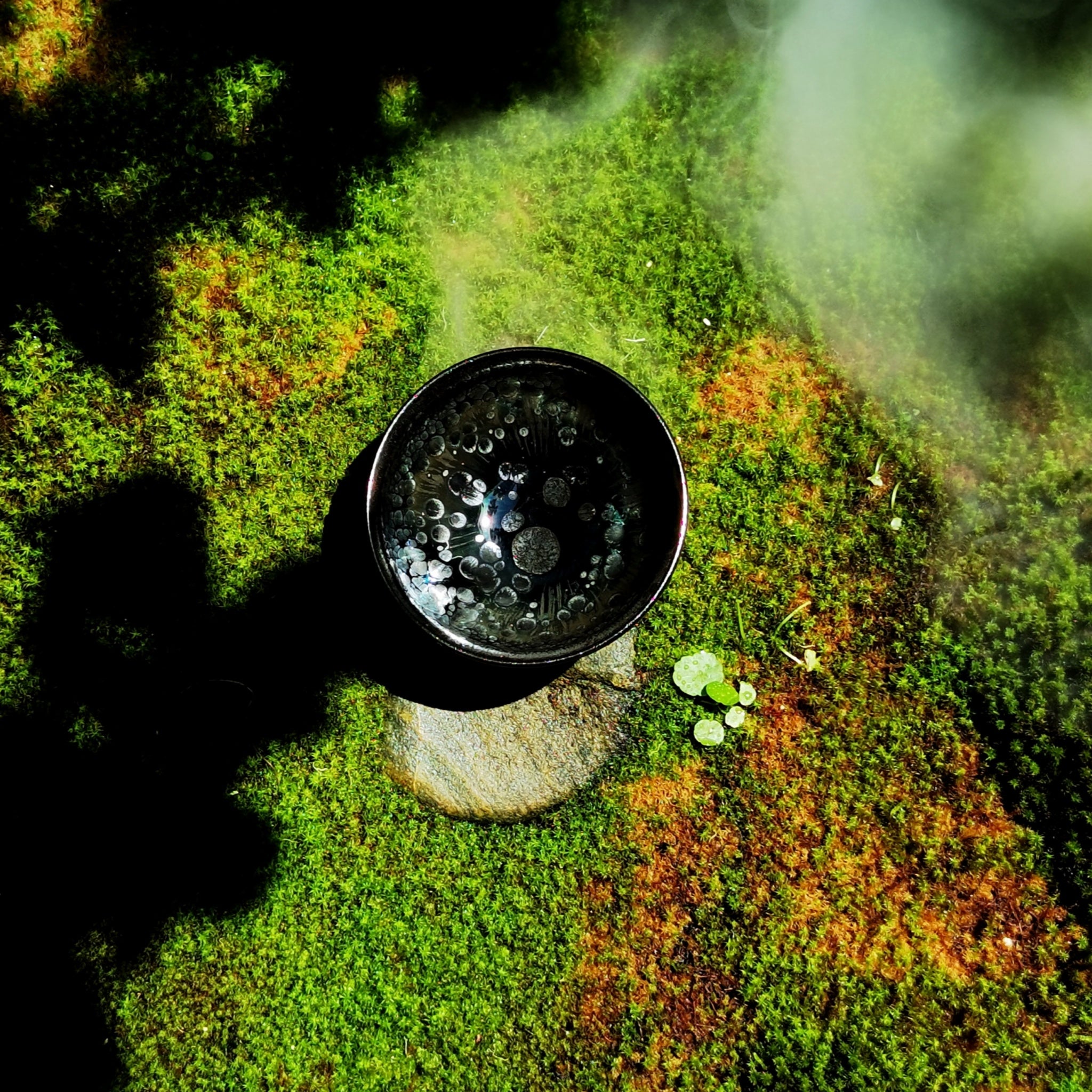 Through carefully controlled oxygen intake, stunning natural patterns emerge—reminiscent of meteorite craters and cosmic auroras. The deep black glaze transitions gently to a jade-like rim, with lush glaze texture and dramatic dripping effects. What makes each cup truly one-of-a-kind are the vibrant and unpredictable colors formed by mineral traces and firewood elements reacting under intense heat. Its position in the kiln further shapes its unique visual story—making no two pieces alike.