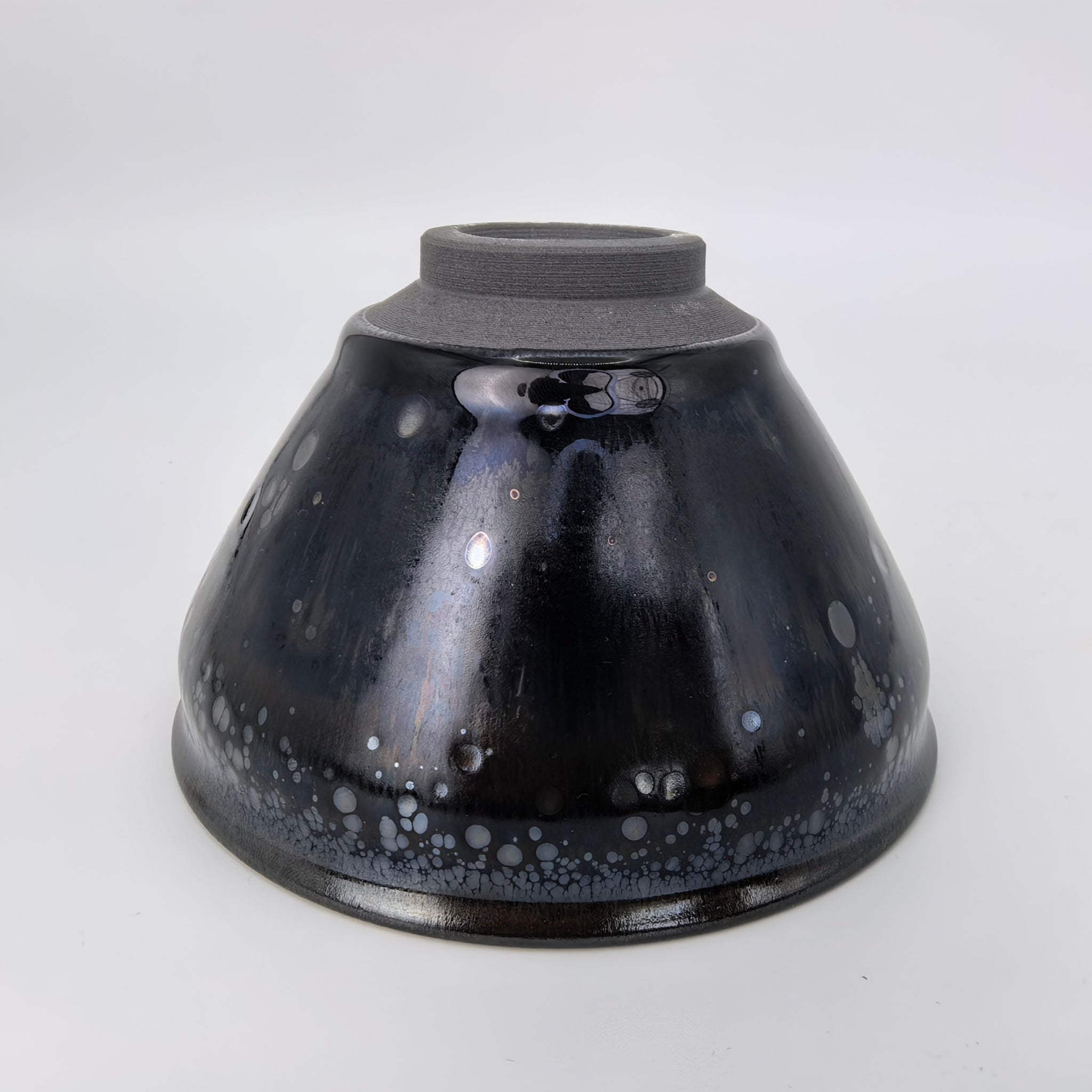 Through carefully controlled oxygen intake, stunning natural patterns emerge—reminiscent of meteorite craters and cosmic auroras. The deep black glaze transitions gently to a jade-like rim, with lush glaze texture and dramatic dripping effects. What makes each cup truly one-of-a-kind are the vibrant and unpredictable colors formed by mineral traces and firewood elements reacting under intense heat. Its position in the kiln further shapes its unique visual story—making no two pieces alike.