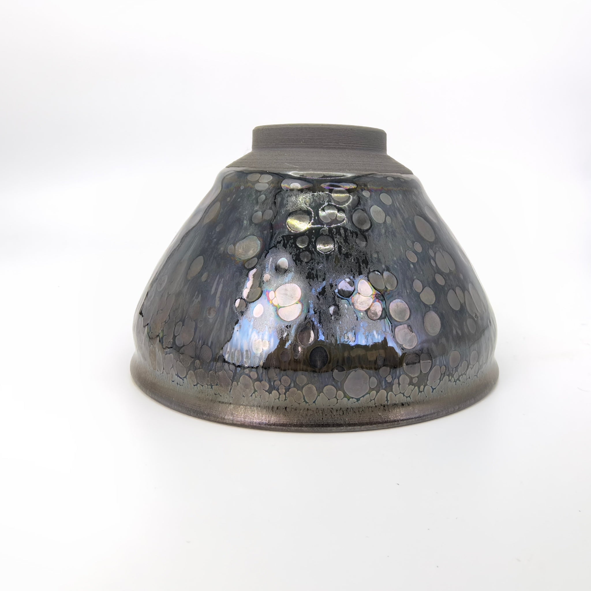 Through carefully controlled oxygen intake, stunning natural patterns emerge—reminiscent of meteorite craters and cosmic auroras. The deep black glaze transitions gently to a jade-like rim, with lush glaze texture and dramatic dripping effects. What makes each cup truly one-of-a-kind are the vibrant and unpredictable colors formed by mineral traces and firewood elements reacting under intense heat. Its position in the kiln further shapes its unique visual story—making no two pieces alike.