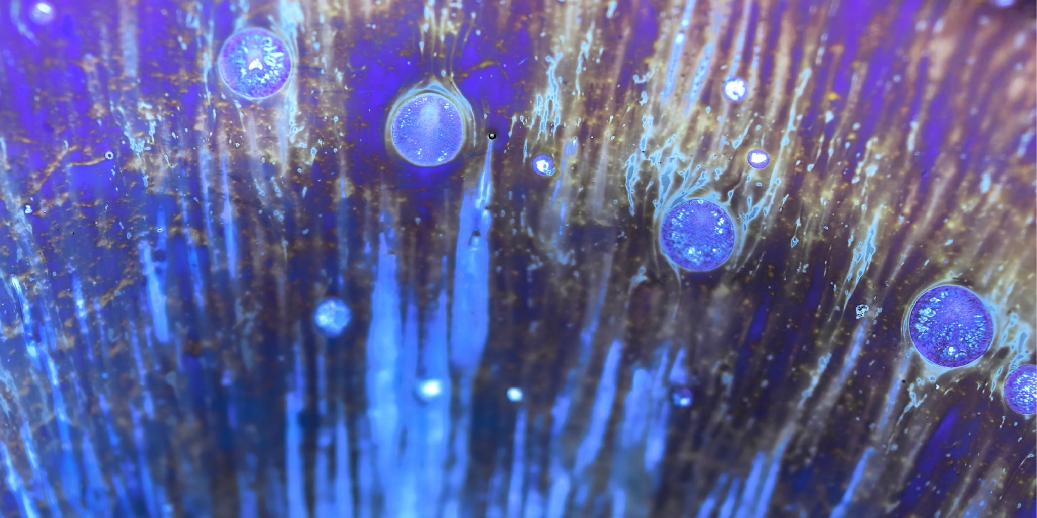 When light touches its surface, star-like crystals shimmer against a profound dark background. The elegant patterns boast radiant hues, large size, striking three-dimensionality, and a textured tactile surface with distinct layers. Its egg-shaped form showcases breathtaking kiln-generated films in blue, green, purple, and gold—each with a sublime vitrified finish and metallic glow.